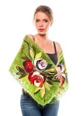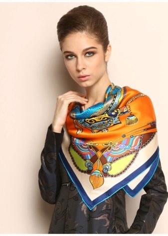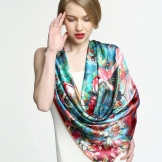 Amazingly beautiful silk scarf of deep shades will emphasize the natural beauty of the eyes and make even the most ordinary outfit a weekend. Such a product can also be worn in the form of a head scarf.