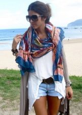 The scarf helps not only to revive your seasonal look, but also to hide or emphasize figure flaws. With the help of scarves, you can visually reduce the outstanding bust or volumetric hips. If you are not in awe of your shoulders, because they seem to be too wide, put on a scarf. If it seems to you that your neck is rather short, a spectacularly tied scarf can easily hide it. Also, if for some reason, you are unhappy with your hairdo - a scarf-shawl on your head will help correct the situation. This is a great choice for summer onions, giving you some mystery.