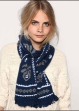 Original mating is the main trump card of this model. Conciseness and at the same time, interesting accents give a special chic to this product. Such a scarf can be worn both in autumn and in fierce winter.