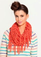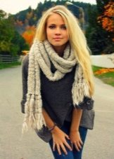 In winter, this model is an indispensable element of the wardrobe, allowing not only not to freeze, but to dilute the dull image. The yarn for making a scarf can be either natural or acrylic. Naturally, natural wool will cost significantly more, and you need to take care of such a product in a special way, but unlike acrylic, such a thing will serve you for years.