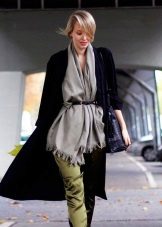 - Scarf shawl. Asymmetrically throw a scarf over your shoulders, take one turn. Tuck one corner into a coil formed on the other side. Adjust the scarf in front.
