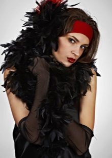 It is best to combine a feather scarf with more elegant images. This may be a small dress or a set with a skirt. But if you wear feathers with ordinary jeans and a T-shirt, then it will look a little ridiculous. At present, ornaments with feathers are extremely common, so a scarf can replace them.
