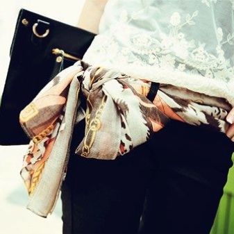 Thin scarf is ideal to highlight your elegance and sophistication on a beautiful summer day. And it can give a certain fervent negligence, if such a small scarf is tied to the hand, leaving sticking "tails". In winter, you may need a woolen scarf to warm up and create a cozy, homely and warm atmosphere around you.