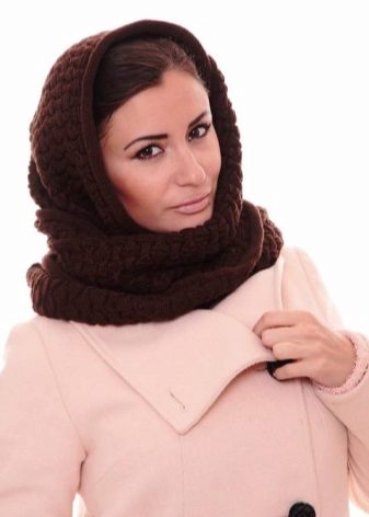 - Throwing a scarf around your neck, you need to make a loop, and then put the other end on your head. This option will protect in cold weather instead of a headdress.