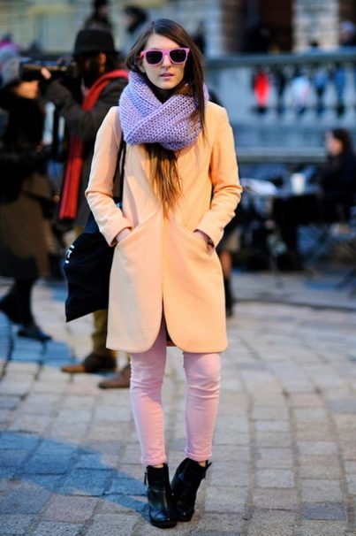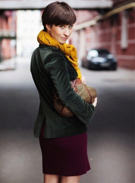 - Wear a scarf around your neck, not tying or wrapping it. Thus the neck is visually lengthened, the silhouette is emphasized.