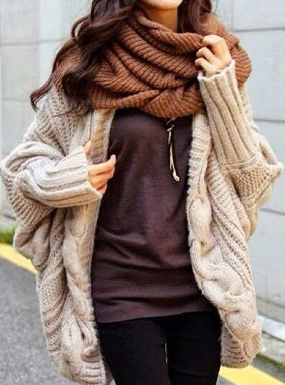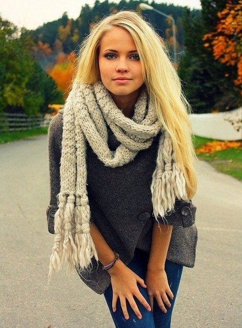 - The warmer the outerwear, the larger the knitting of the scarf;