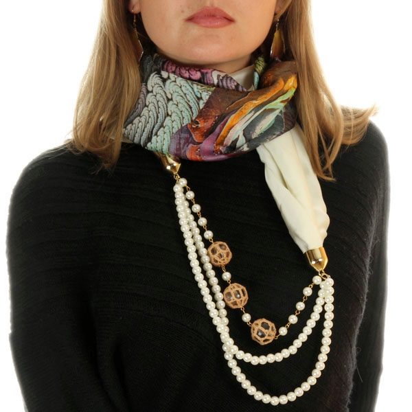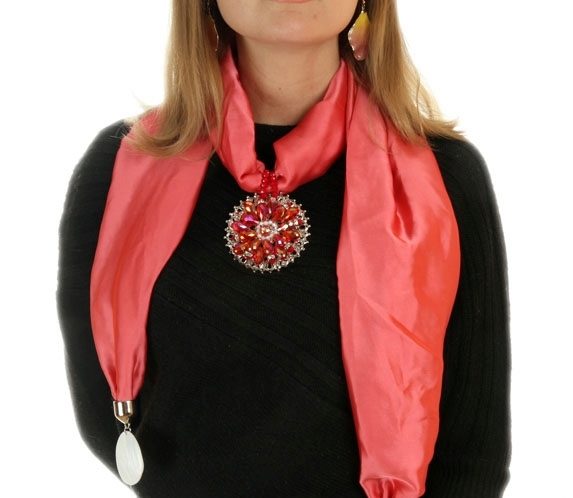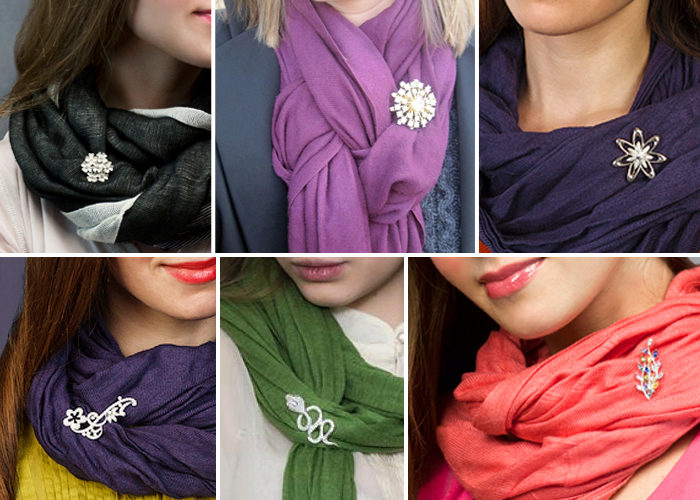 For lovers of exotic and unusual, try a scarf adorned with precious stones. This completely unvarnished accessory will accurately draw all the attention of those around you. For women more modest, but wanting to get a few looks, you can try to start with an elegant brooch attached to a scarf and clothes.