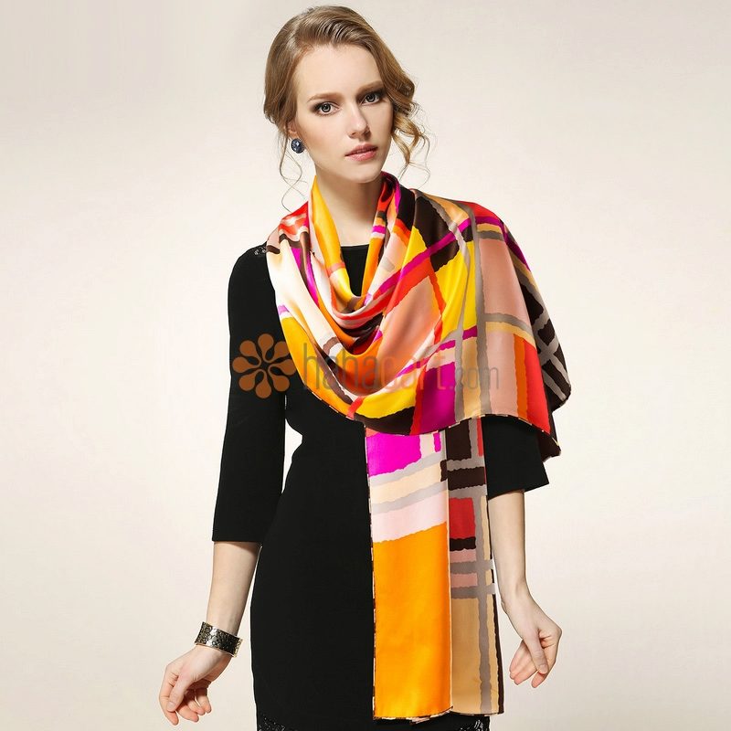 The most profitable silk scarf will be a scarf with a “faded” pattern or a marbled pattern. These scarves are most popular because they give a special charm to your image. For knitted things of casual style is better to choose thin chiffon scarves with floral motifs or geometric patterns. This is if you want to diversify and add a positive mood to your image. If you adhere to a stricter, restrained style, then plain silk scarves are perfect for you.