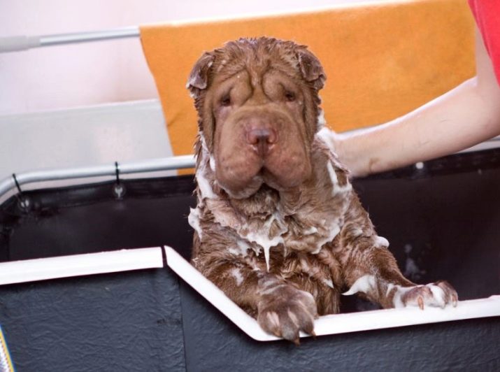 When bathing, it is important to ensure that water does not get into the dog’s ears, as even a small amount of water trapped in the ear canals, can cause the development of various diseases. When bathing, it is necessary to wash all the folds well, and it is better to use shampoos designed specifically for this breed, due to the high sensitivity of the dog's skin.