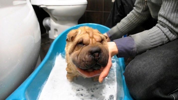 It is necessary to bathe Sharpey monthly. During bath procedures, it is desirable to use a special rubber brush. In this way, you will take care of a faster wool replacement process. The skin of wrinkled dogs is very sensitive, so you should use only specialized detergents. Gently wash all the folds on the dog's body, and then dry them thoroughly with a hairdryer (the air temperature should not be too high).