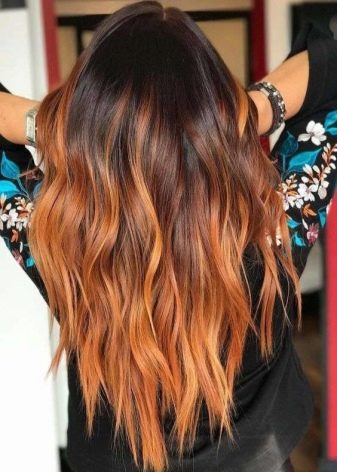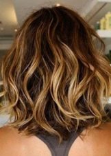 From the shoulders to the shoulder blades - the average size of the curls, on such hair it is possible to apply the technique to the fullest. Not separate zones are used, but staining is carried out along the entire length. If there are bangs of sufficient length, it can be included in the ensemble.