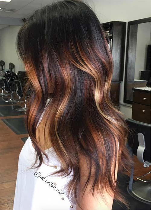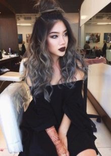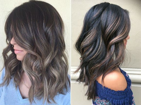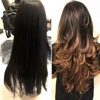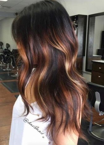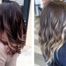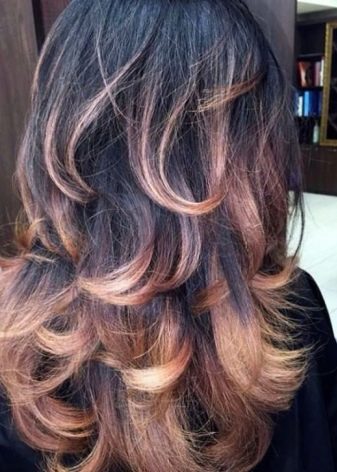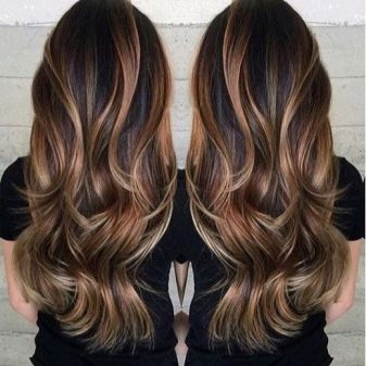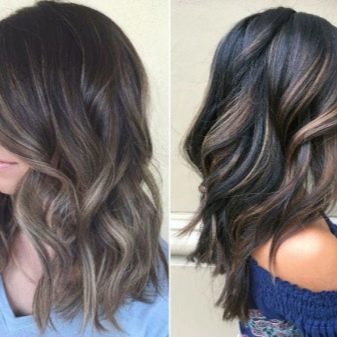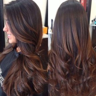 Shatush on dark hair suggests a smooth transition of color from a dark tone near the roots to a lighter one at the tips. By type of technique mimics the natural fading of the hair after a vacation at sea. It is more difficult to make a smooth transition on dark hair, therefore it is advised to contact experienced masters.