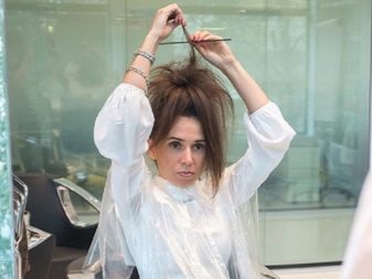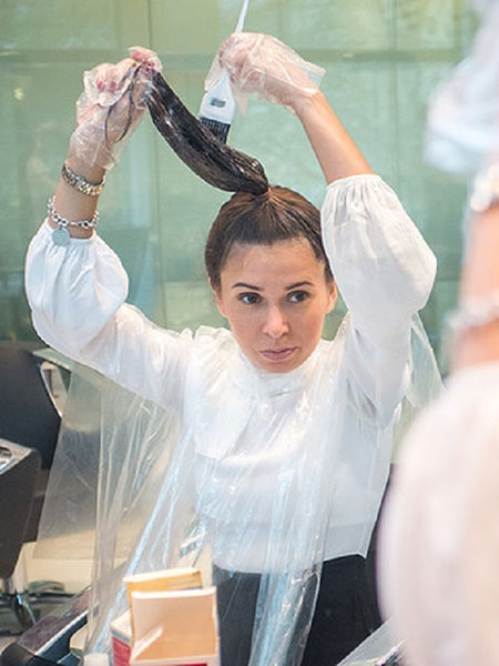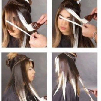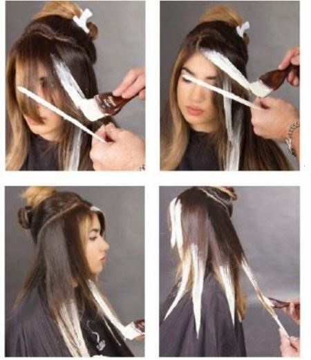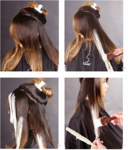 Hair dyeing in the described technique can be done independently at home, just need to learn a step-by-step guide. Begin to apply the coloring composition with the lower strands, each of which should be up to two centimeters wide. Facilitates the process of basal bouffant, which is applied to the clarifier, only after that the curls are tinted. If you are satisfied with the natural tone, you can minimize the effect of the dye and do not completely dye your hair.