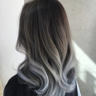 Ashy blond looks good, you only need to achieve the perfect shade so that yellowness is absent, and this is not always easy to do. This color transition is perfectly combined with a rhapsody or wedge-cut hair.
