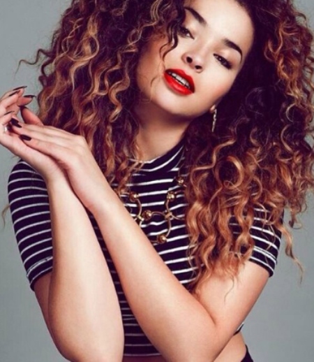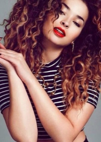 Ideal for using the technique of curly hair, because each strand is located on its own level. When coloring are well viewed light colors. With very curly hair, you can and not make bouffant, the time for the procedure takes less. The main feature of curly curls - they are more porous, so the pigment penetrates the hair structure faster.