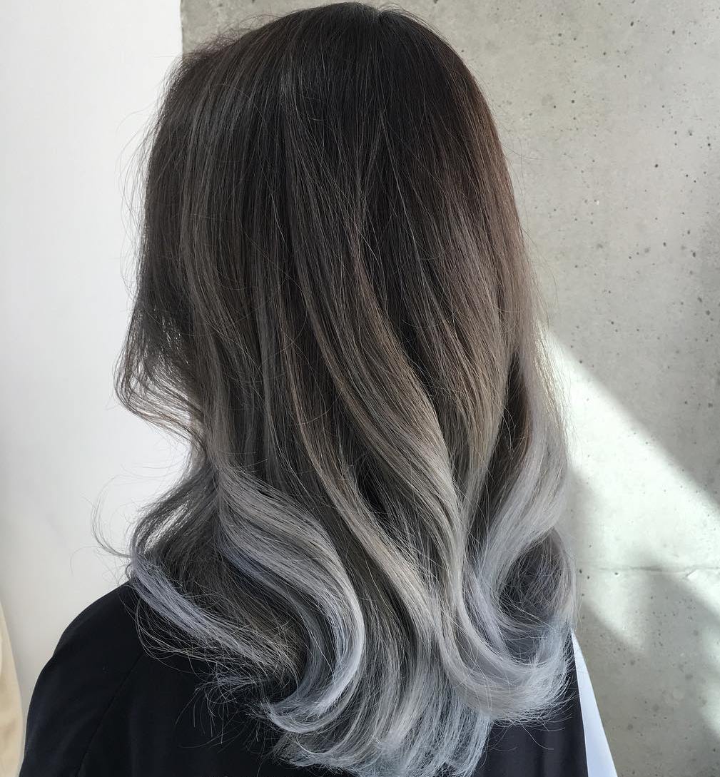 An ashy shade on dark hair is unusual and very impressive on dark hair, some of the more daring girls then add a purple or pink shade.