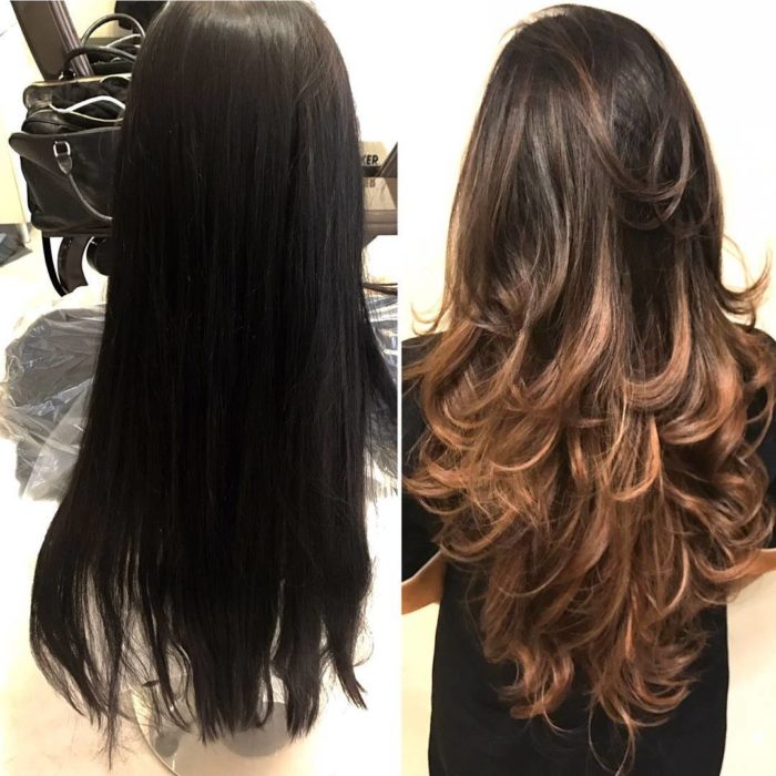 The perfect canvas for an amazing natural effect is long hair. Especially good looking multi-level haircuts. In the presence of bangs, the coloring is made from the level where its length ends, otherwise there will be no harmony.