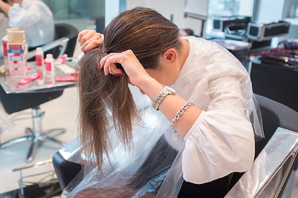 - The coloring composition is applied to the bouffant made evenly in small strokes. Particular attention should be paid to the hairs that are located inside. Finishes stain especially well, since they must have a more intense color.