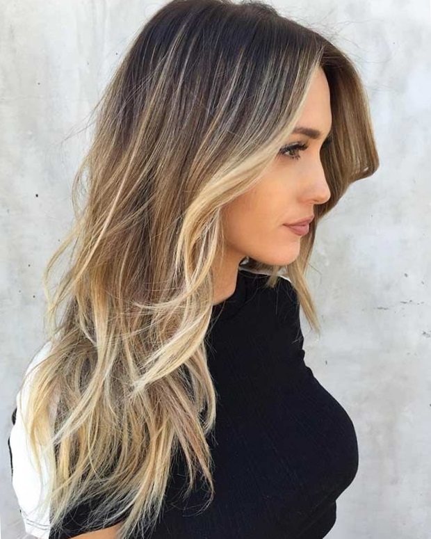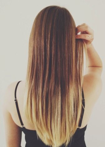 When compared to ombrethen it implies darkening of the curls. Hair with this effect has a darker color at the roots and gradually becomes lighter towards the ends. Color is applied only locally at the tips, shades should complement each other. Ombre is ideal for women who have long hair.