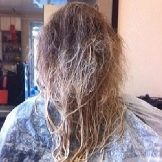 - Gentle staining. Hair is not stained at the roots. It keeps healthy onion hair. In the future, this will ensure the growth of strong curls. Lightening is done every 2 or 3 months.