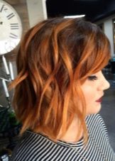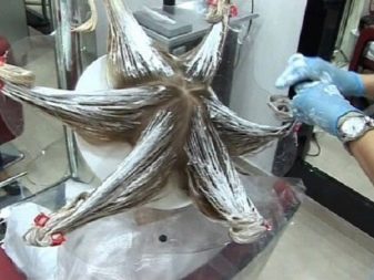 Since foil or other curl separators from each other are not used in dyeing, colors can flow onto adjacent curls, mix with each other and create new shades. Thus, it turns out the most effective staining. In a separate dish divorced 2 or 3 additional shades. The mixture is applied to small curls.