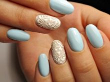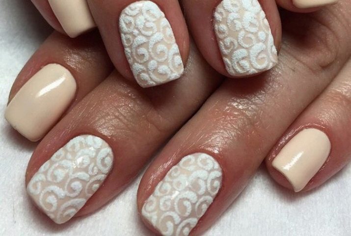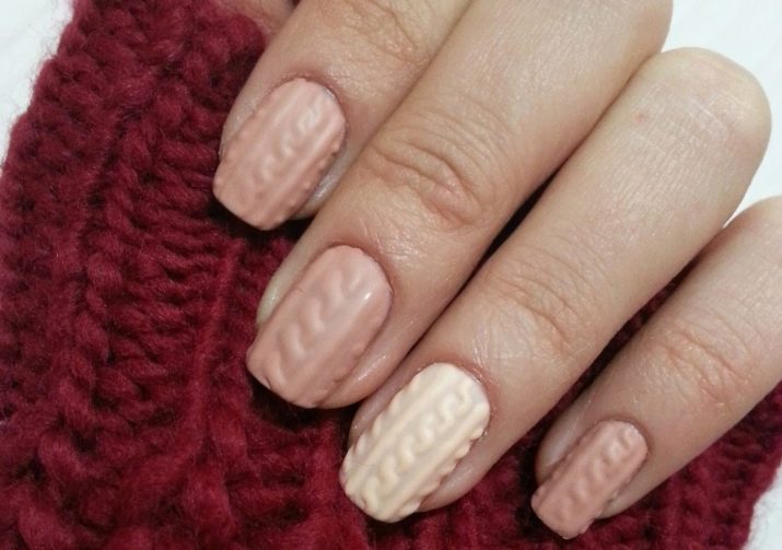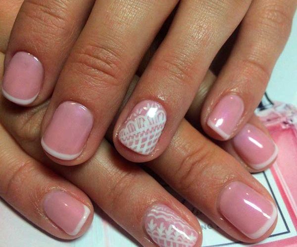 To create a gentle manicure, just a couple of nails are enough to paint with a pastel tone. Extra softness of the fingers will give the painted sand spit, which seemed to be knitted on your nails.