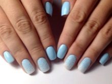 - Blue These include shades such as aquamarine, hyacinth, white and gray-blue. But not all women use this palette on their fingers, since these colors can give the skin excessive pallor. Using blue shades, you need to carefully select the design.