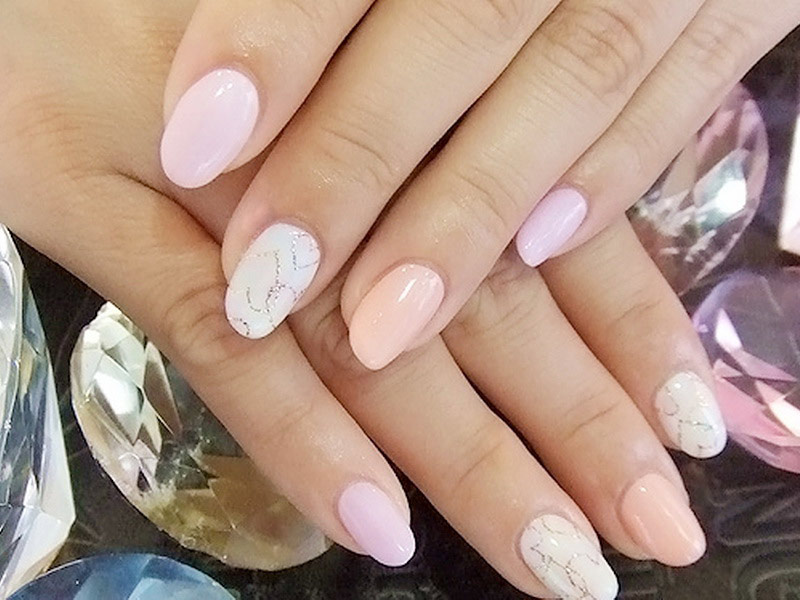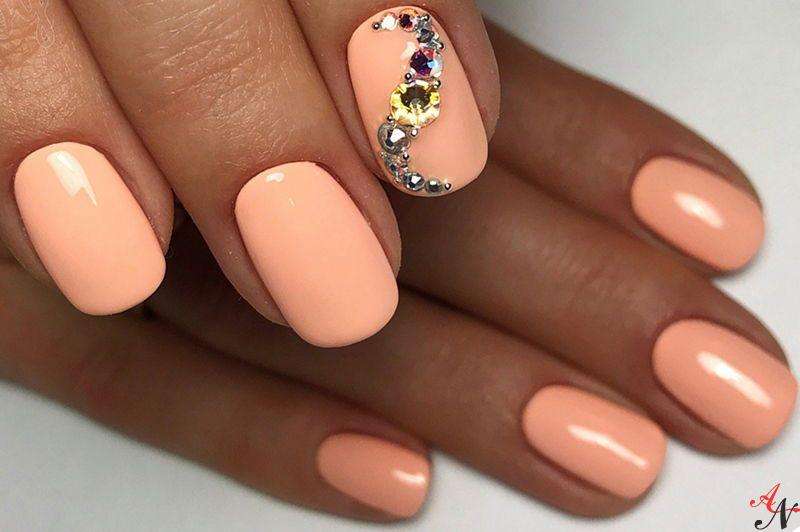 - Pink Pastel shades of this color are also quite diverse. Here you will find pale pink, salmon, peach, coral and many other shades. At first glance, a manicure made with pastel shades of pink color is only suitable for young ladies, but this is far from true. Selecting, for example, the shade of "dusty rose", you will get a very appropriate manicure for more mature women.