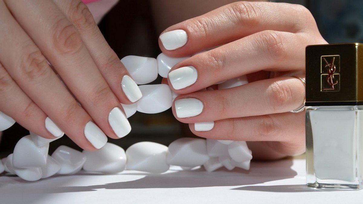 - White. The drawing made by this color of shellac can add a touch of tenderness to any manicure of any color. White color can be used as a substrate for decor, but then it will be better to choose paint for decor also among calm and subtle tones.
