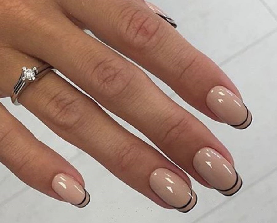 Tenderness on the nails can be created using black gel polish. In this case, it should be applied only with a veil on a light pink backing.