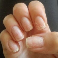- Diseases of the nail plate. Although the coating is considered practical and durable, it has a big drawback in the form of exposure to temperature variations.For example, taking a bath or doing a wet cleaning, the nail expands due to excessive moisture, and then, once in normal conditions, it narrows. Due to permanent deformation, the coating may crack, which cannot be seen with the naked eye. Through these cracks gets dirt, water, and this is an ideal breeding ground for bacteria. Since this coating is worn for a long time, there is a risk that during this time the bacteria will significantly undermine the health of the nails.