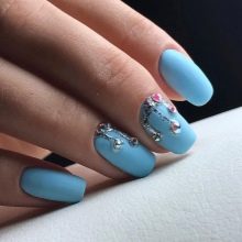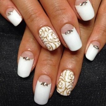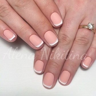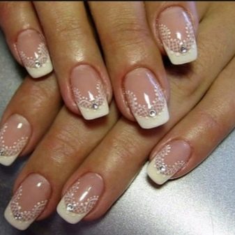 - The immortal classic. This is a classic French manicure, which probably will never go out of style. Now the jacket is diluted with stones, flowers, voluminous figures, a matte finish. In any version it looks stylish and elegant.