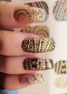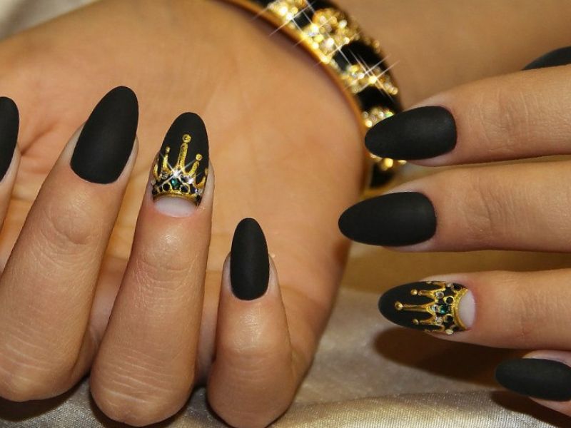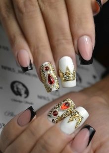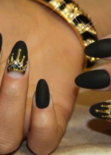 - Another interesting novelty, beloved by the beautiful half of humanity - the royal print. This, according to most beauty bloggers, is the most fashionable manicure of this year. The print includes classic colors interspersed with gold. Mandatory attributes are also the crown and massive stones.