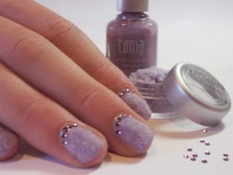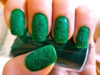 - Velvet manicure is a novelty of this season. Despite the impracticality, manicure was widespread. The impracticality lies in the fact that when the villi get wet, they lose their appearance, although they return to their former condition when dried, but the effect is not the same.