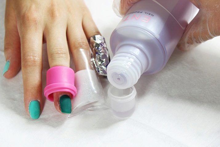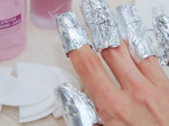 - small sponges impregnate with a special tool and impose on the nail; you must wrap with foil in such a way that the sponge is located on the nail and fits tightly against it;