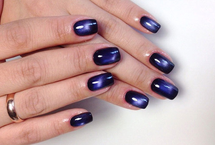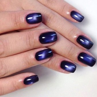 To perform this manicure sold special sets, which includes varnish and magnet. The magnet is applied to the lacquer, due to which a picture resembling the eye of a cat appears. Hence the name.