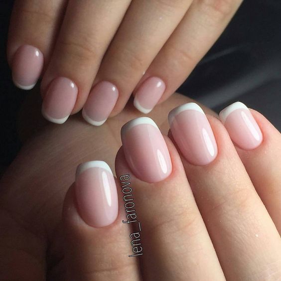 Classic French manicure that never goes out of style. It looks very elegant due to the exceptional sheen of shellac.