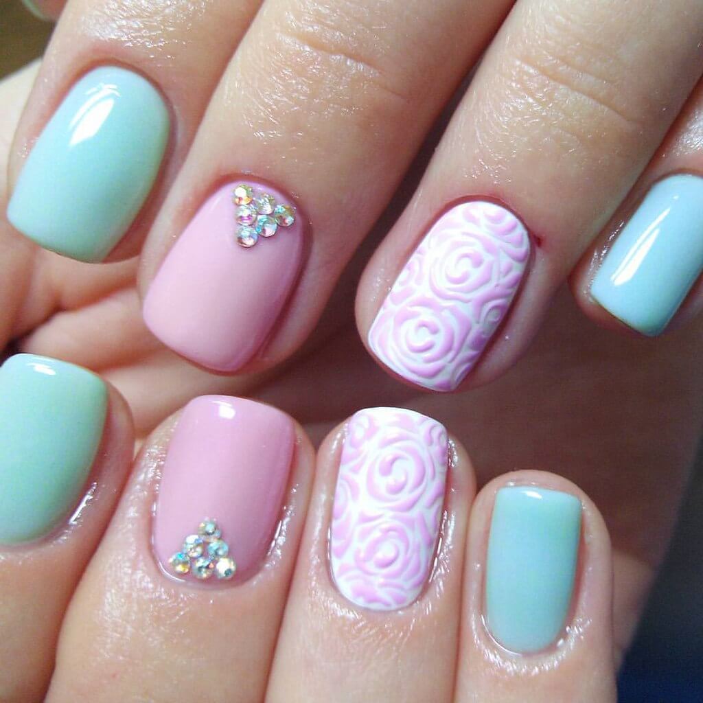 - This year, fashion trends preferred calm tones. Light brown hues, all tones of beige and pink colors, are widely used. Such tones are great for both medium and long nails. This manicure can be diluted with rhinestones or acrylic powder of the same color.