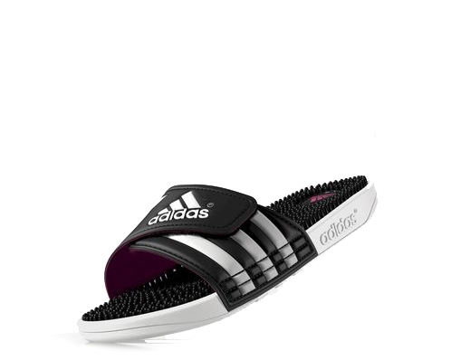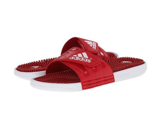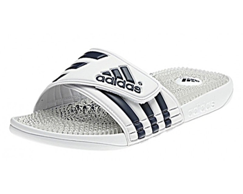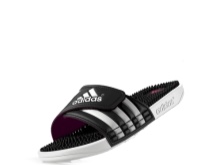- Adidas Adissage batts as an example of universal shoes for the whole summer season. These slates or slaps are characterized by characteristic rubber protrusions, which well stimulates blood circulation.
