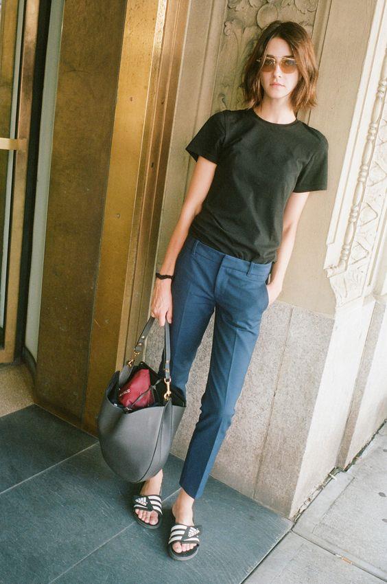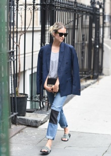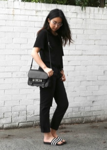 On the catwalks you can see a variety of combinations of clothes and shoes, which are not always applicable in real life. Therefore, when choosing the famous Adidas slates, you should proceed from the purpose of the purchase. You can wear these "slippers" for different occasions that accompany us in the summer: