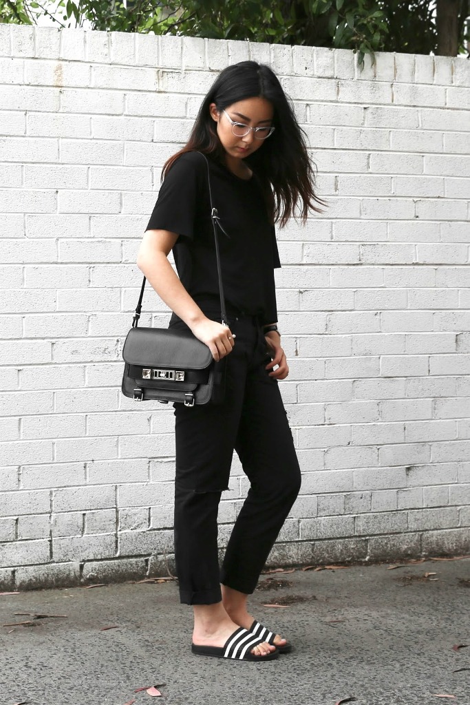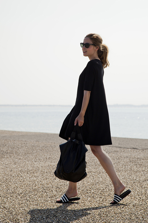 Adidas black shale models have a slightly grooved sole and are designed for long walks. The elegant design of summer shoes allows you to combine it with different outfits - with a dress, skirt, jeans. You can pick up a volume bag to match.