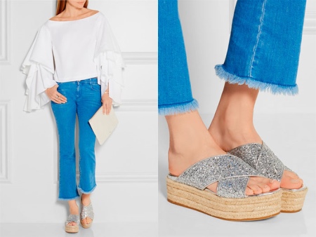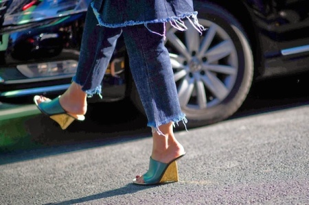 Slippers on high wedges look very sexy. Such shoes visually make the lady taller and slimmer. Summer outfit, complemented by such bright shoes, will look very feminine and impressive.