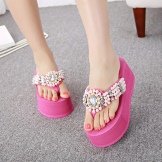 In the modern world, women's slippers are an integral part of the beach ensemble and have many varieties. The most sought-after options for women on a high platform. Their sole is made, as a rule, from eco-friendly foam, and the top is made of textiles or other materials. Due to its weightlessness, such shoes are practically not felt on the foot. High outsole is a great solution for small girls. In the fashion today, such slippers with an abundance of straps and weaves, which focuses extra attention on the elegant ankle. There are models on the platform, where the top has one wide jumper. Its width often varies with Velcro or special clamps.
