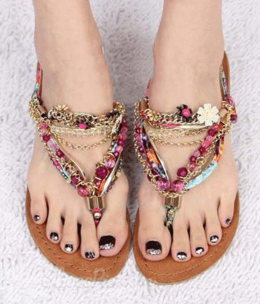 Dianets - women's beach shoes On a flat turn with a distinctive design - two strips designed for the thumb support the lift. Feminine dianets can be worn not only on the beach, they are often decorated with stones and rhinestones.