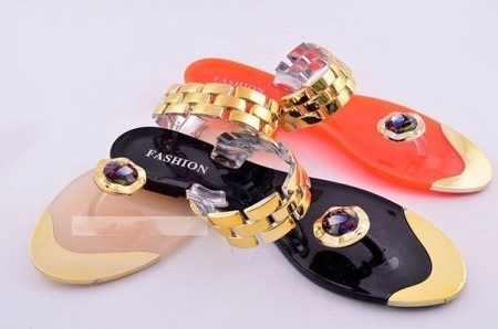 As for the color palette of beach slippers, then summer is undoubtedly the best time for bright colors. It is on such models that one should opt for fair-skinned girls, combining such shoes with colorful swimsuits and pareos. They also fit black or white slippers. But on a tanned body looks great product beige, as well as metallic shades.