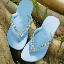 Rubber slates have a lintel that starts from the middle of the foot and ends between the toes. The sole in such footwear soft, but strong, has no heel. Slates are presented in a large assortment of models, which may have a small wedge or a ribbed surface. Also, the differences may be in the form of jumpers.