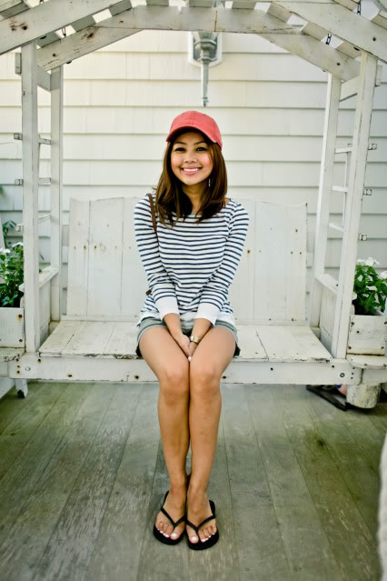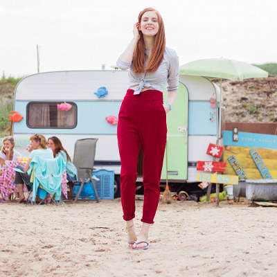 - Mini skirt, short top and rubber slates - ready-made beach look.