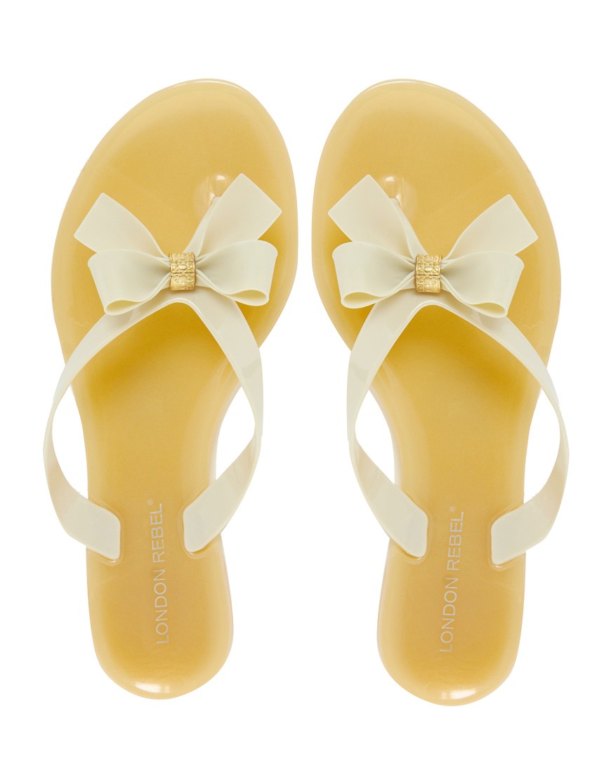 - Lovely model in bright colors represents the brand London Rebel. With the help of a simple decor - a bow, it turned out to create bright shoes that are easy to wear and simply blend with summer clothes.