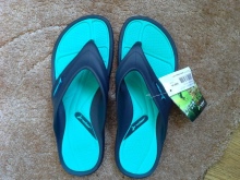 It is recommended to choose a product with a relief sole. A flat and smooth rubber sole will be very slippery, which can lead to serious injuries, especially when it comes to visiting the pool.