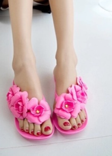 The most common are models of rubber on a comfortable flat sole. These shoes will be the perfect solution for trips to the beach and beach parties. The choice of such models is simply huge, and any fashionista will be able to choose for themselves the perfect match.